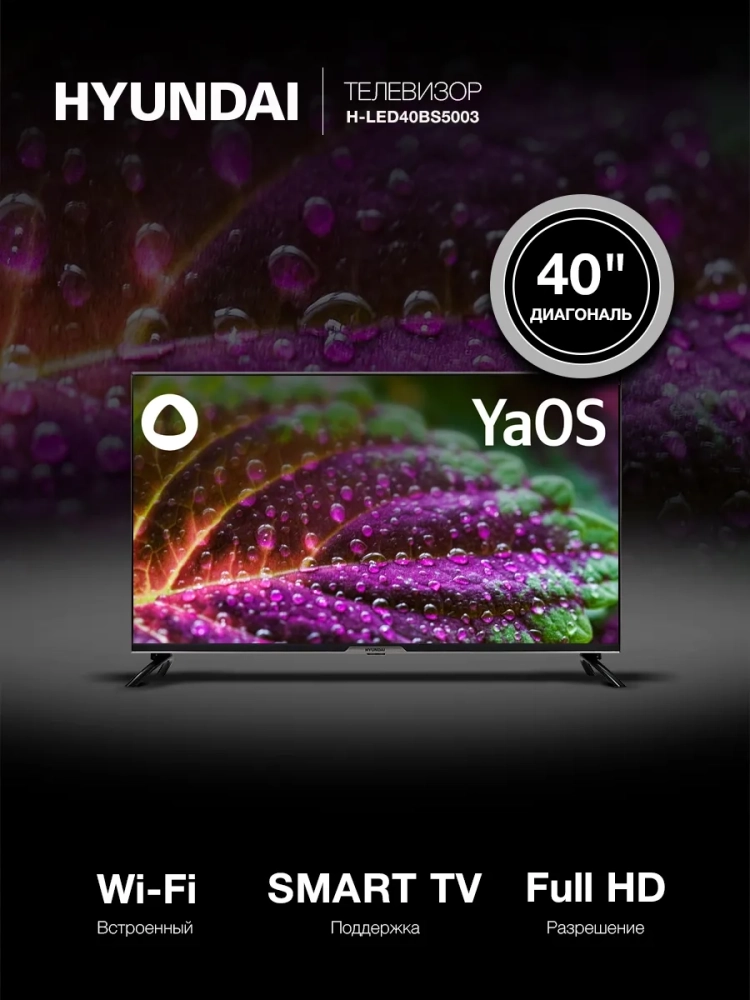 Hyundai H-LED40BS5003 – это современный тонкий телевизор из линейки Яндекс ТВ с поддержкой множества полезных функций.
