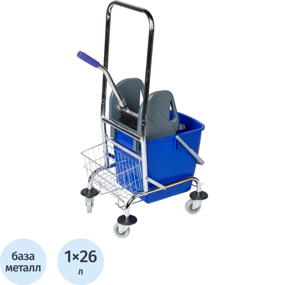 Тележка для мытья полов с отжимным прессом Luscan Prof, 26л, 56x40x94см