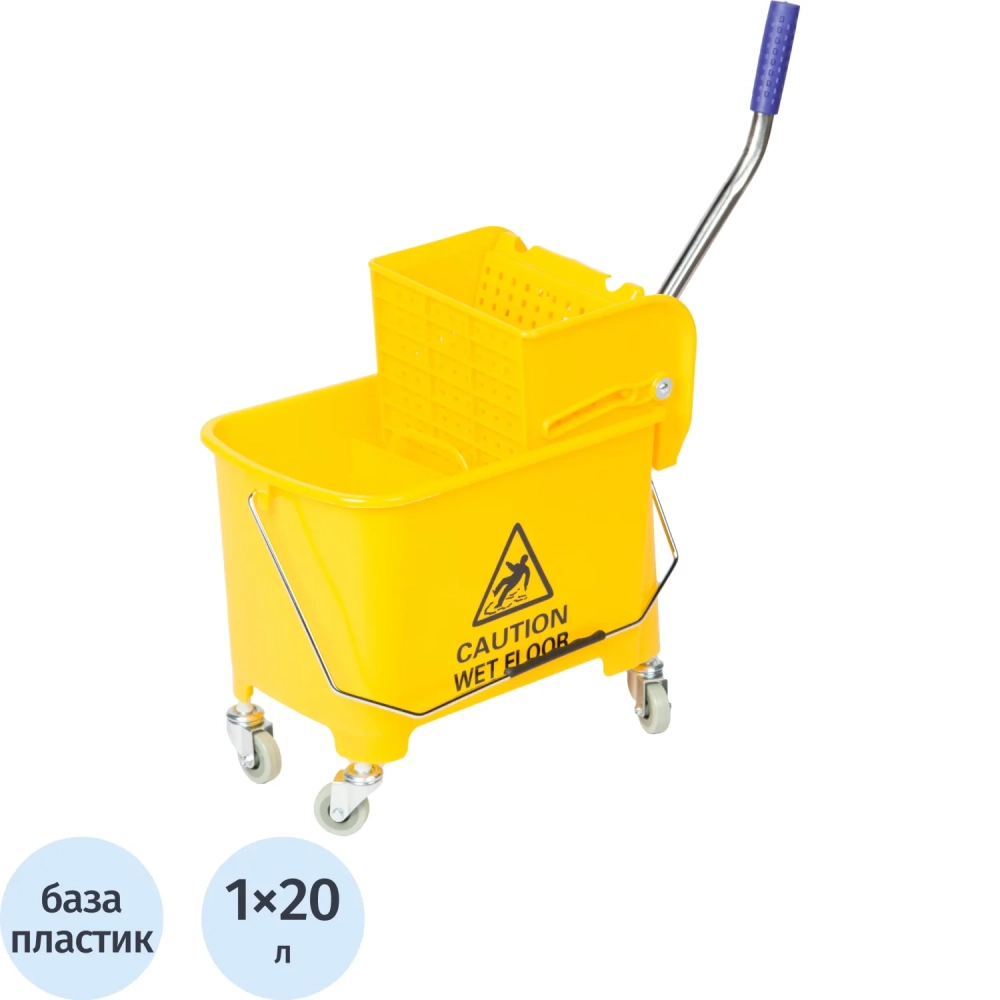 Тележка уборочная мини с отжимом, Luscan Prof, 20л, 63x27x67см, желтая