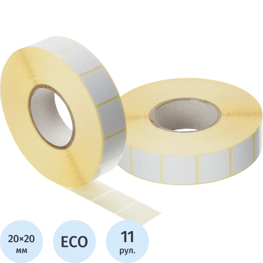 Термоэтикетки ЭКО 20х20, 2000 шт/рул, вт.40, 11 рул/уп (спайка)
