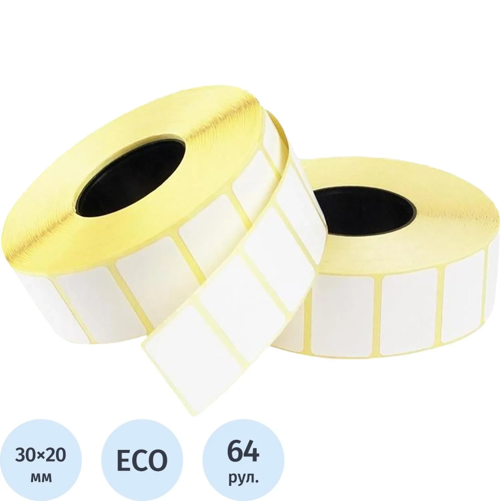 Термоэтикетки ЭКО 30x20мм, без печати, 2000шт./рул, вт 40мм, 64рул/уп