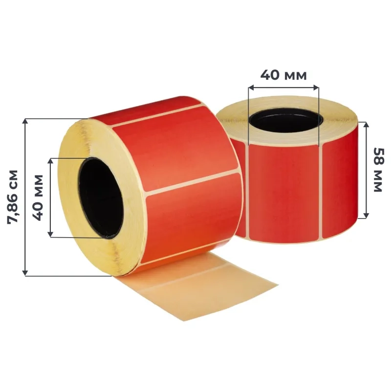 Термоэтикетки ЭКО 58х40, 700 шт/рул, вт.40, красные, 6 рул/уп (спайка)