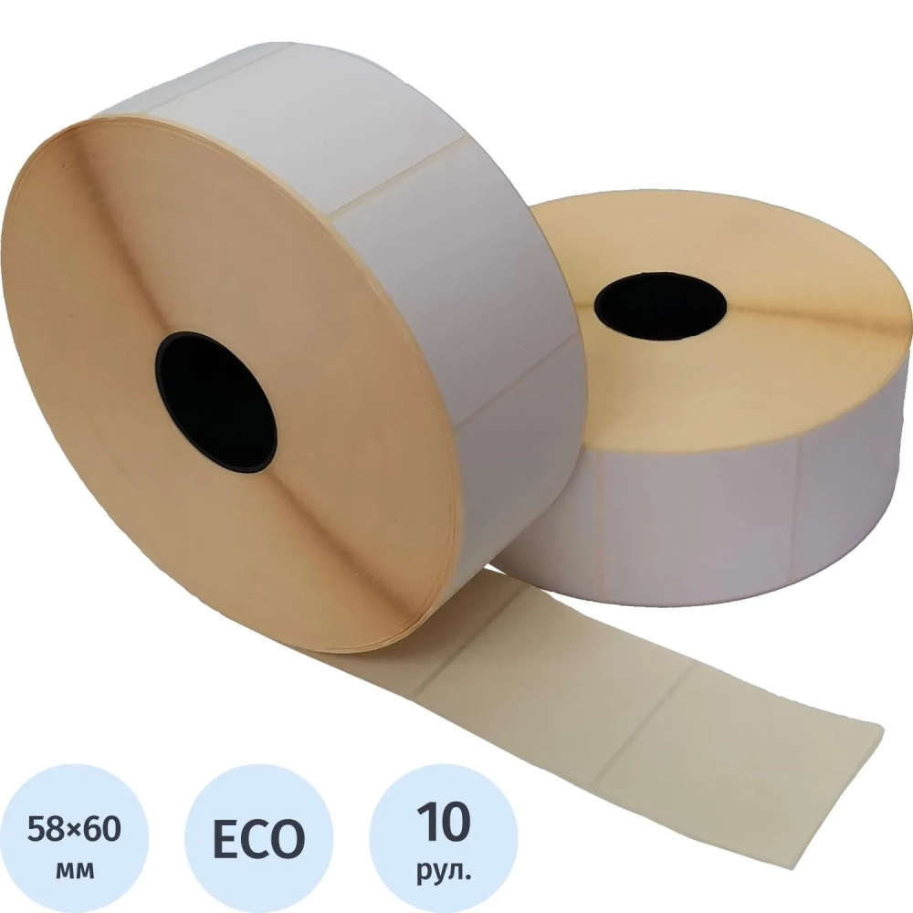 Термоэтикетки ЭКО 58х60,3000шт/рул, вт.40, 10рул/уп /36