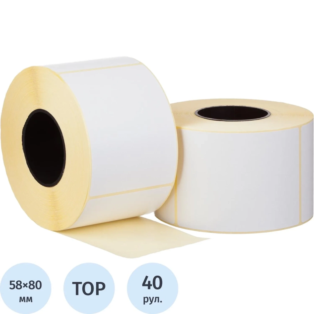 Термоэтикетки Т/ТОП 58х80, 500 шт/рул, вт.40, мороз. кл, 40 рул/уп
