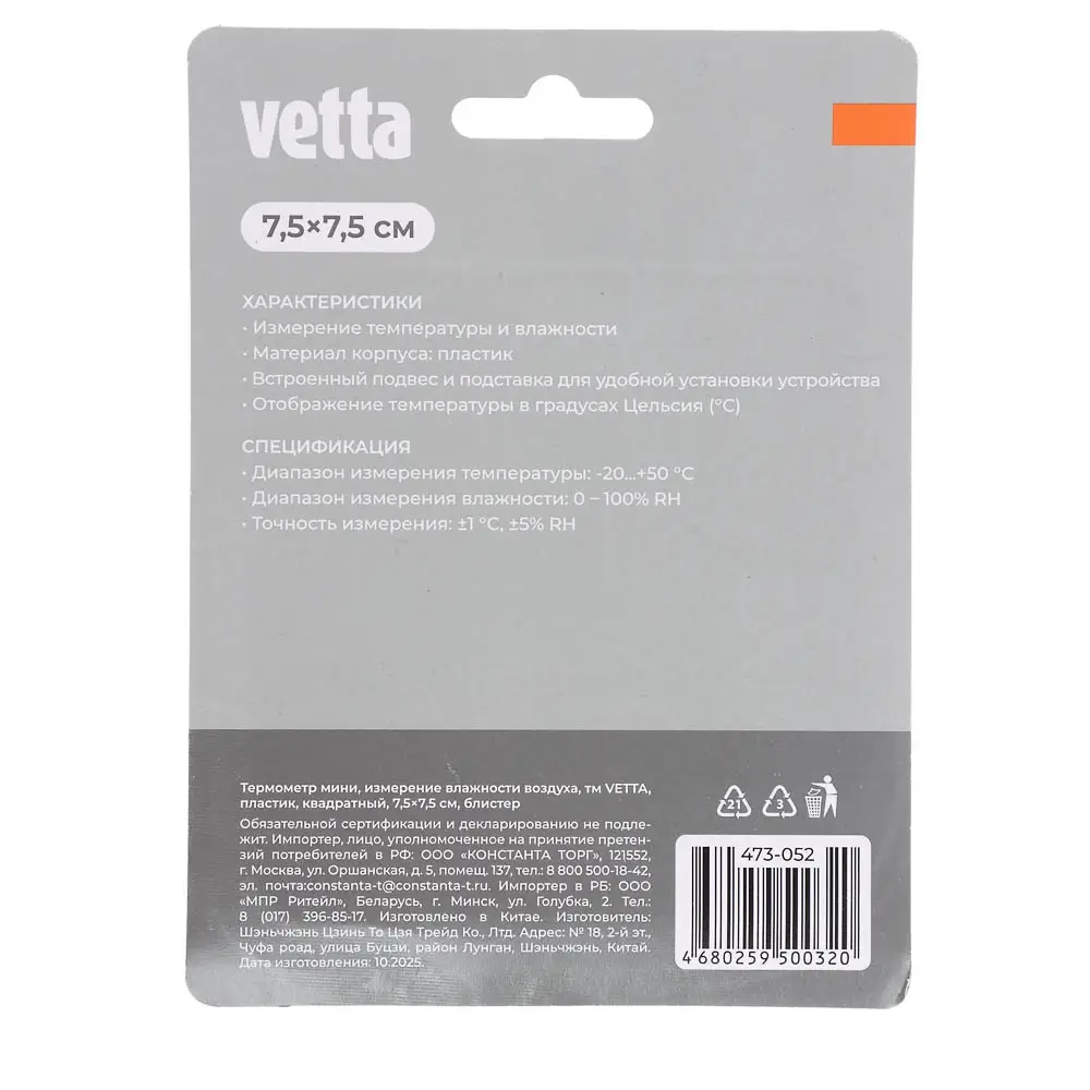 Термометр мини тм VETTA, измерение влажности воздуха, 7,5x7,5см, пластик