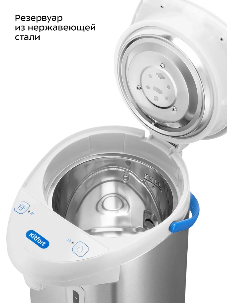 Термопот Kitfort КТ-2532 служит для кипячения и поддержания температуры воды с помощью периодического включения и отключения нагрева. Отличие термопота от обычного чайника состоит в том, что термопот поддерживает температуру воды, поэтому у вас всегда есть горячая вода.