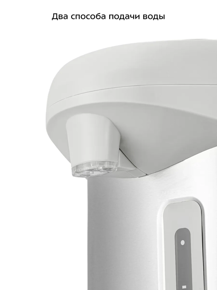 Двойные стенки термопота помогают сохранить тепло и реже включать нагрев, что поможет сэкономить на электроэнергии. Корпус термопота состоит из пластика и нержавеющей стали, а резервуар — из нержавеющей стали. Внутренняя часть крышки также сделана из нержавеющей стали, поэтому вода не соприкасается с пластиковыми частями устройства.