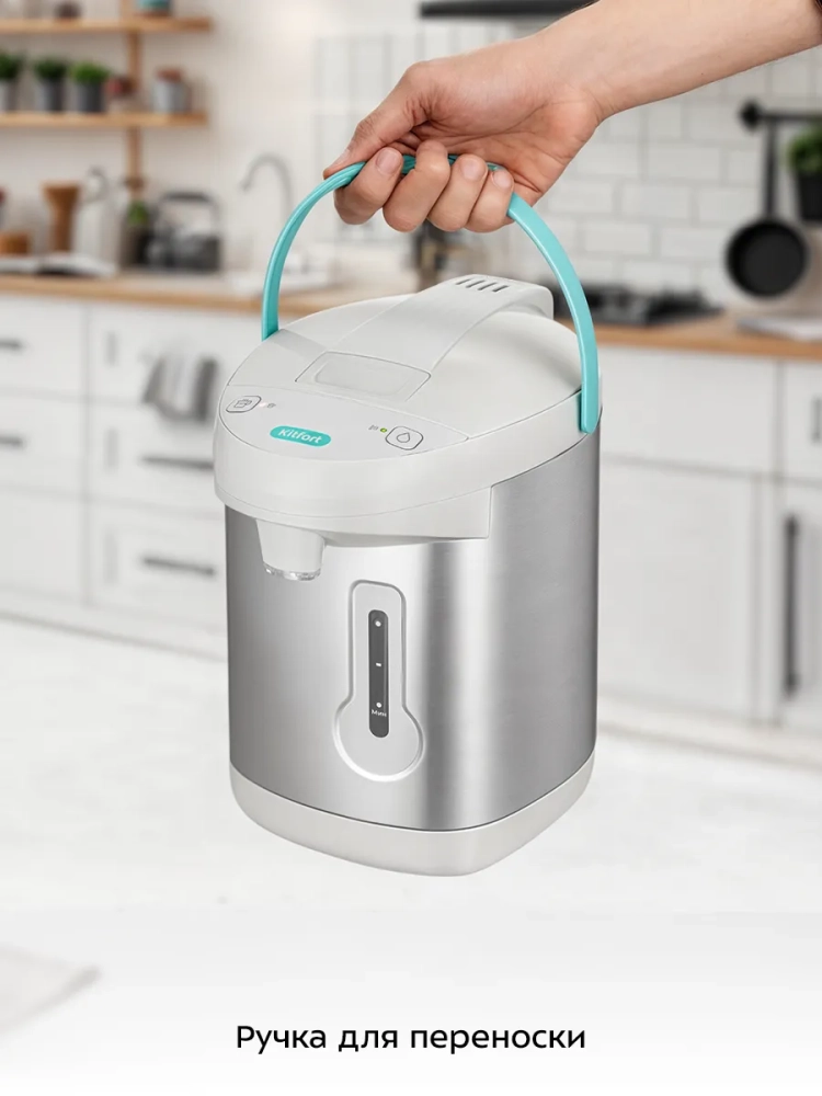 Термопот Kitfort КТ-2533 служит для кипячения и поддержания температуры воды с помощью периодического включения и отключения нагрева. Отличие термопота от обычного чайника состоит в том, что термопот поддерживает температуру воды, поэтому у вас всегда есть горячая вода.