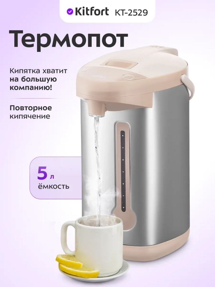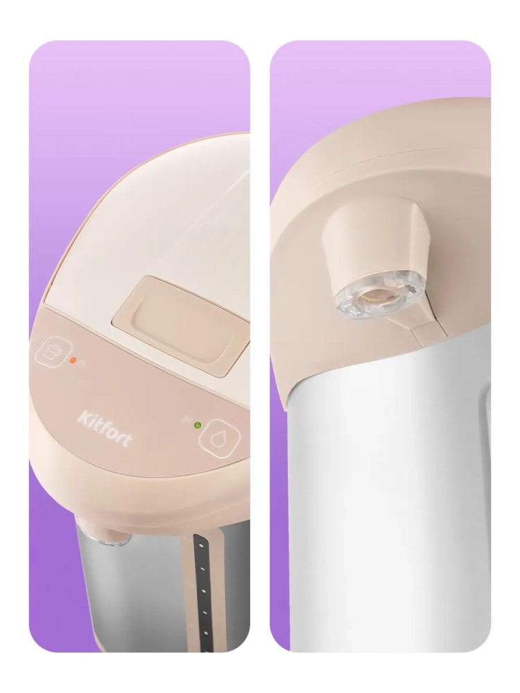 Термопот Kitfort КТ-2529 служит для кипячения и поддержания температуры воды с помощью периодического включения и отключения нагрева. Отличие термопота от обычного чайника состоит в том, что термопот поддерживает температуру воды, поэтому у вас всегда есть горячая вода.