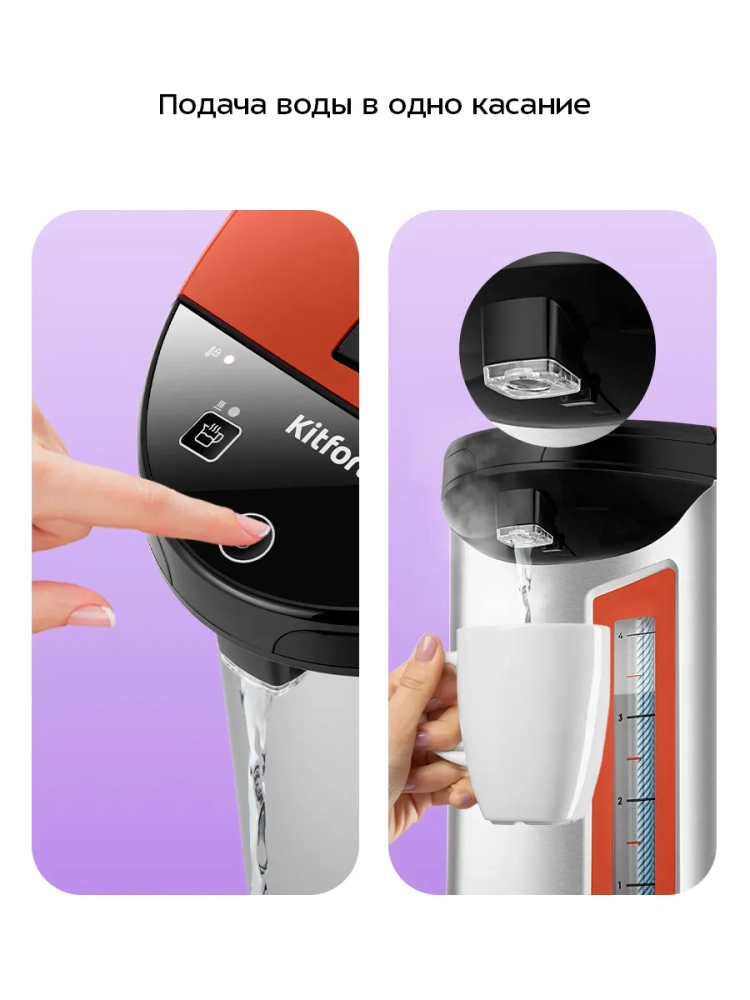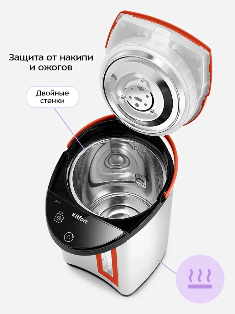 Термопот Kitfort КТ-2527 служит для кипячения воды и поддержания ее температуры воды с помощью периодического включения и отключения нагрева. Отличие термопота от обычного чайника в том, что термопот поддерживает температуру воды, поэтому она может оставаться горячей долгое время, если вам это необходимо.