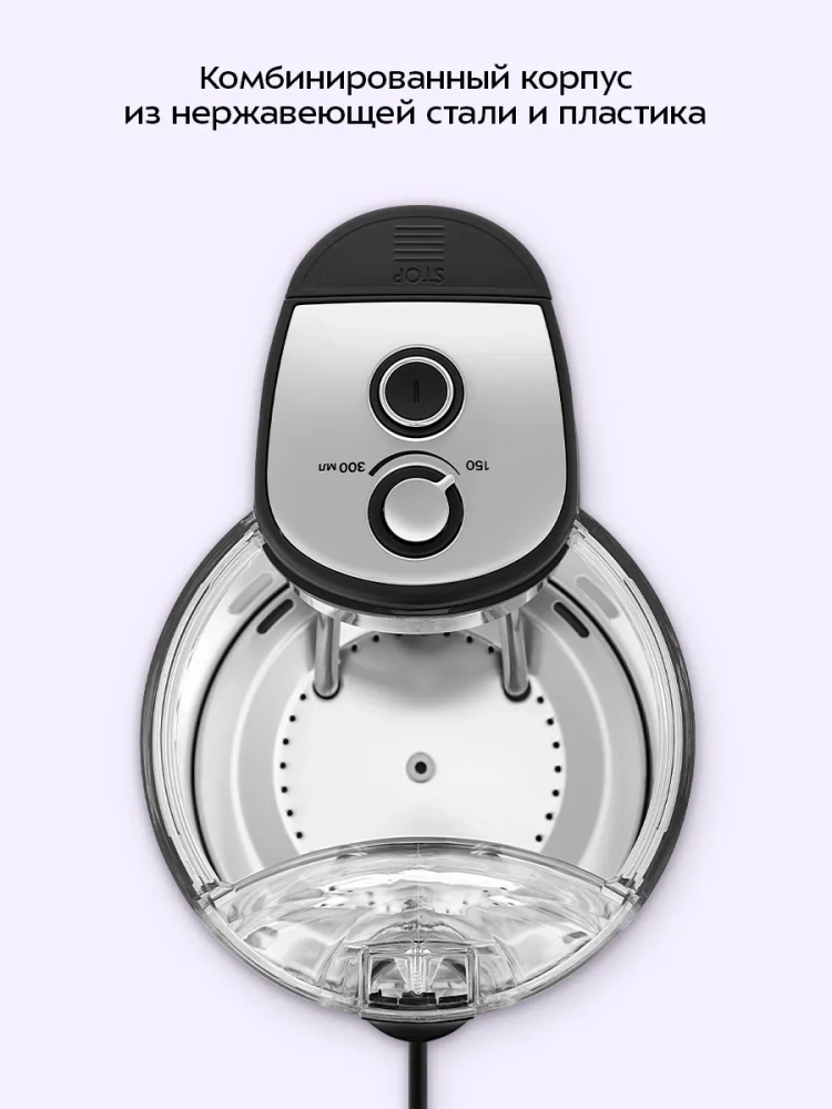 Термопот позволяет выбрать объем наливаемой воды от 150 до 300 мл с помощью регулятора. При работе устройства загорается подсветка.
