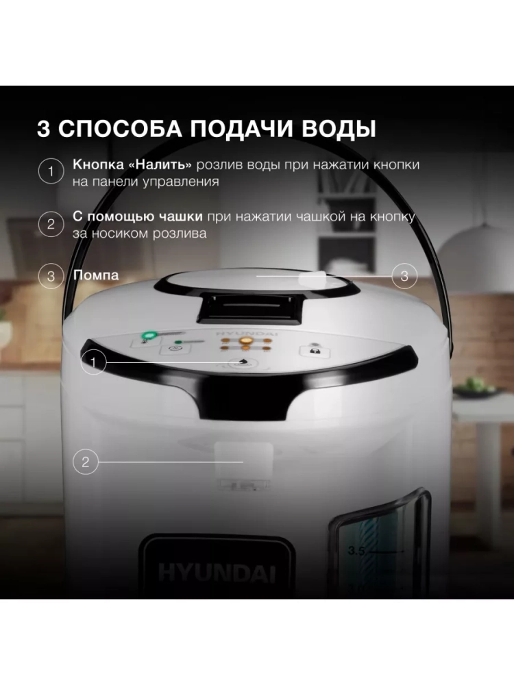 Термопот Hyundai HYTP-4840 белый/черный, объем 4л., мощность 750Вт, температурные режимы 45/55/65/75/85/98/100/поддержание температурыС, комбинированный насос