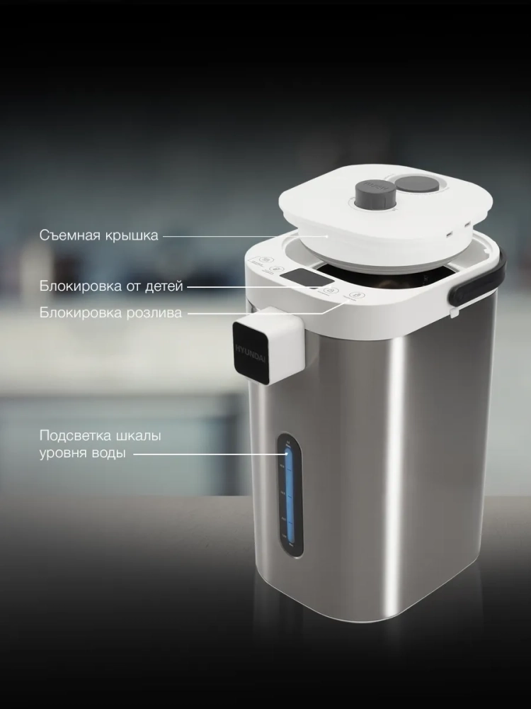Наслаждайтесь горячими напитками в любое время с термопотом HYUNDAI HYTP-5235. Этот современный прибор сочетает в себе стильный дизайн, высокую функциональность и надежность.