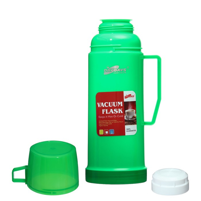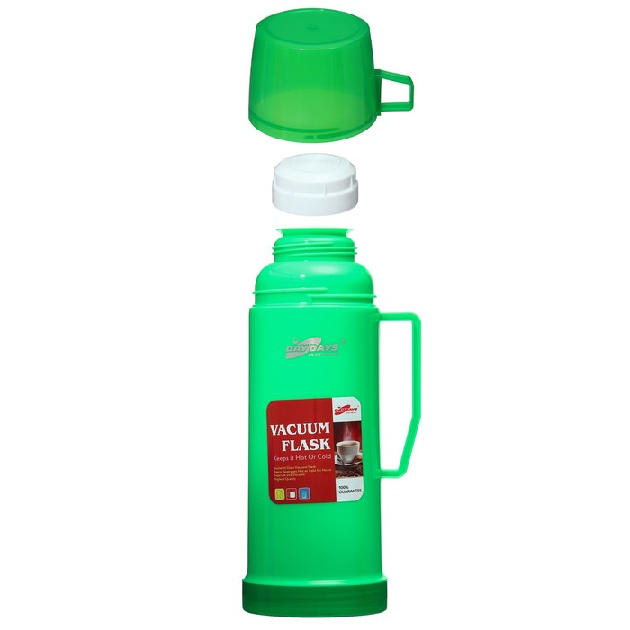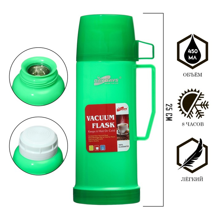 Термос 450 мл, со стеклянной колбой, с кружкой, 12 х 25 см, зеленый