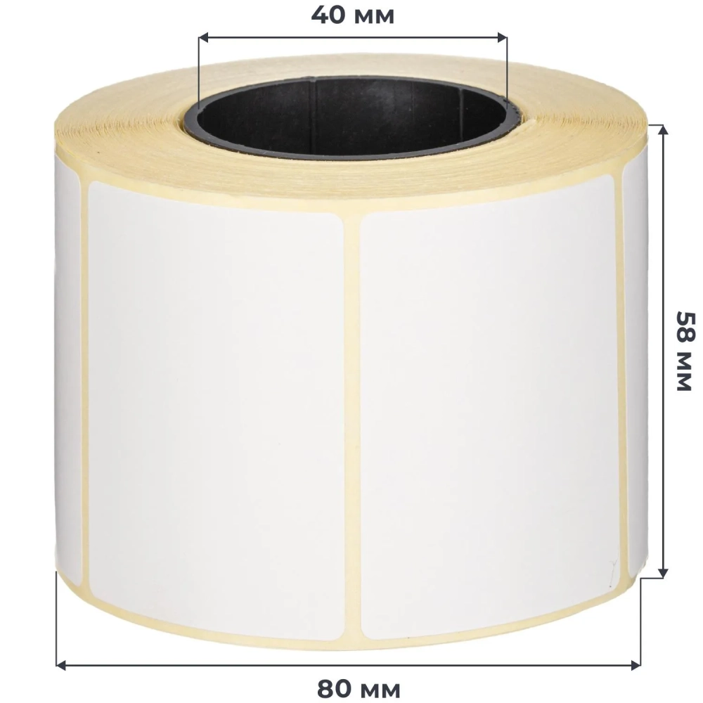 Термотрансферные этикетки ПГЛ 58х40, 700шт/рул, вт.40, 48рул/уп