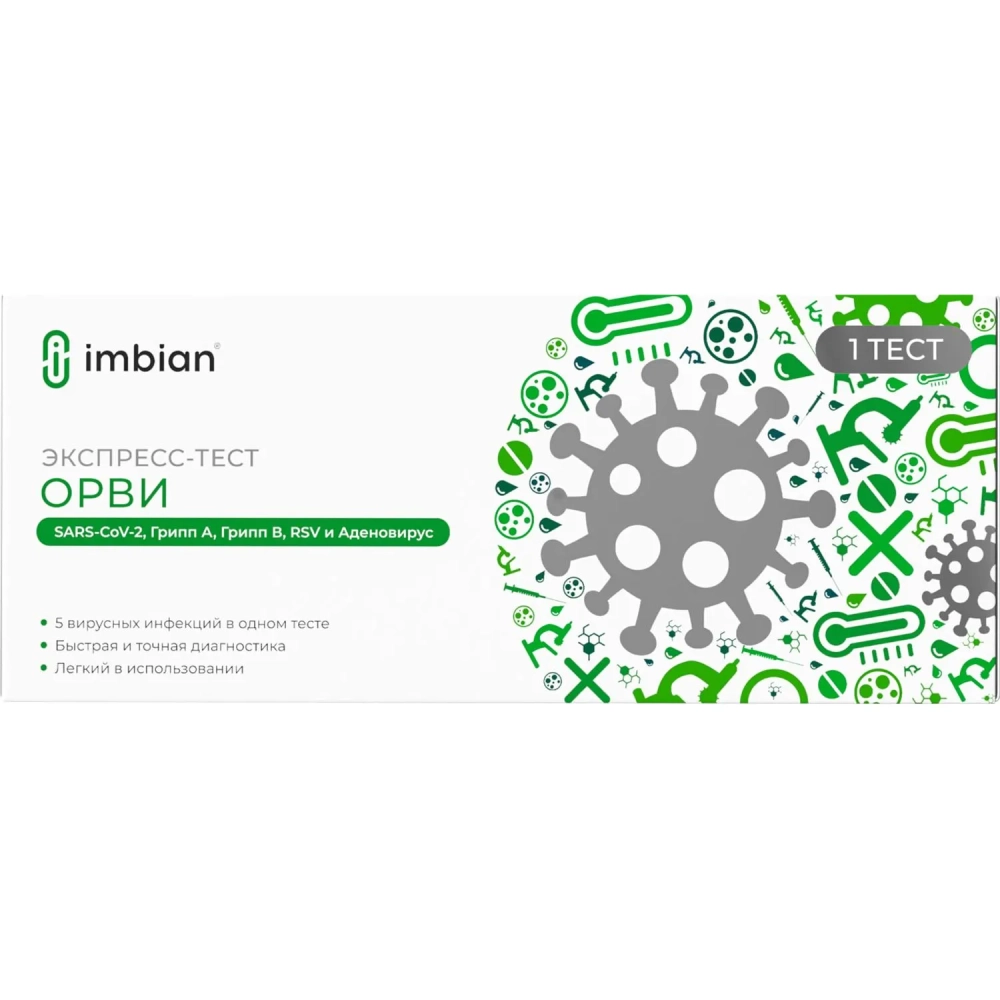 Тест экспресс ОРВИ (Sars-Cov-2, Грипп А, В, RSV и аденовирус), набор