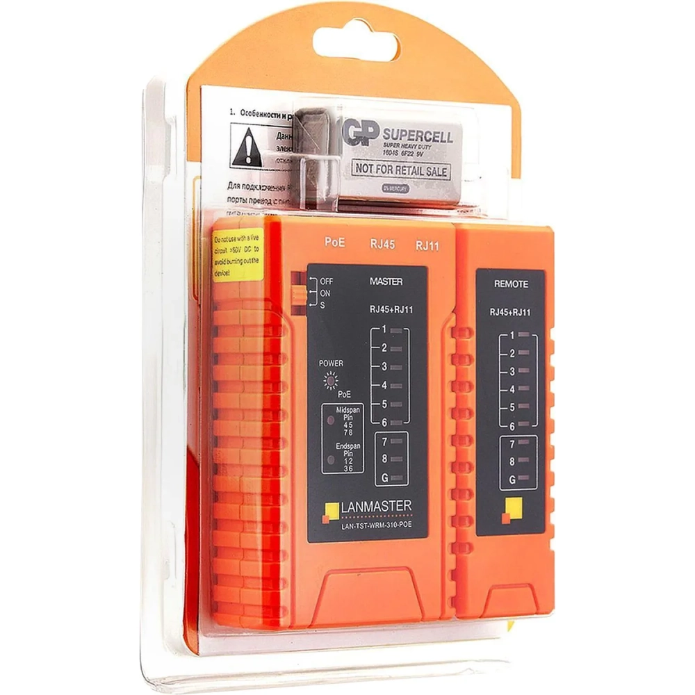 Тестер витой пары LANMASTER LAN-TST-WRM-310-POE с индикаторами, опред. POE
