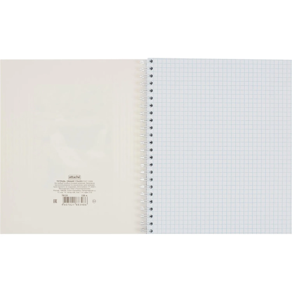 Тетрадь общая Attache,120л,клет,А5,спир,обл.лак.карт