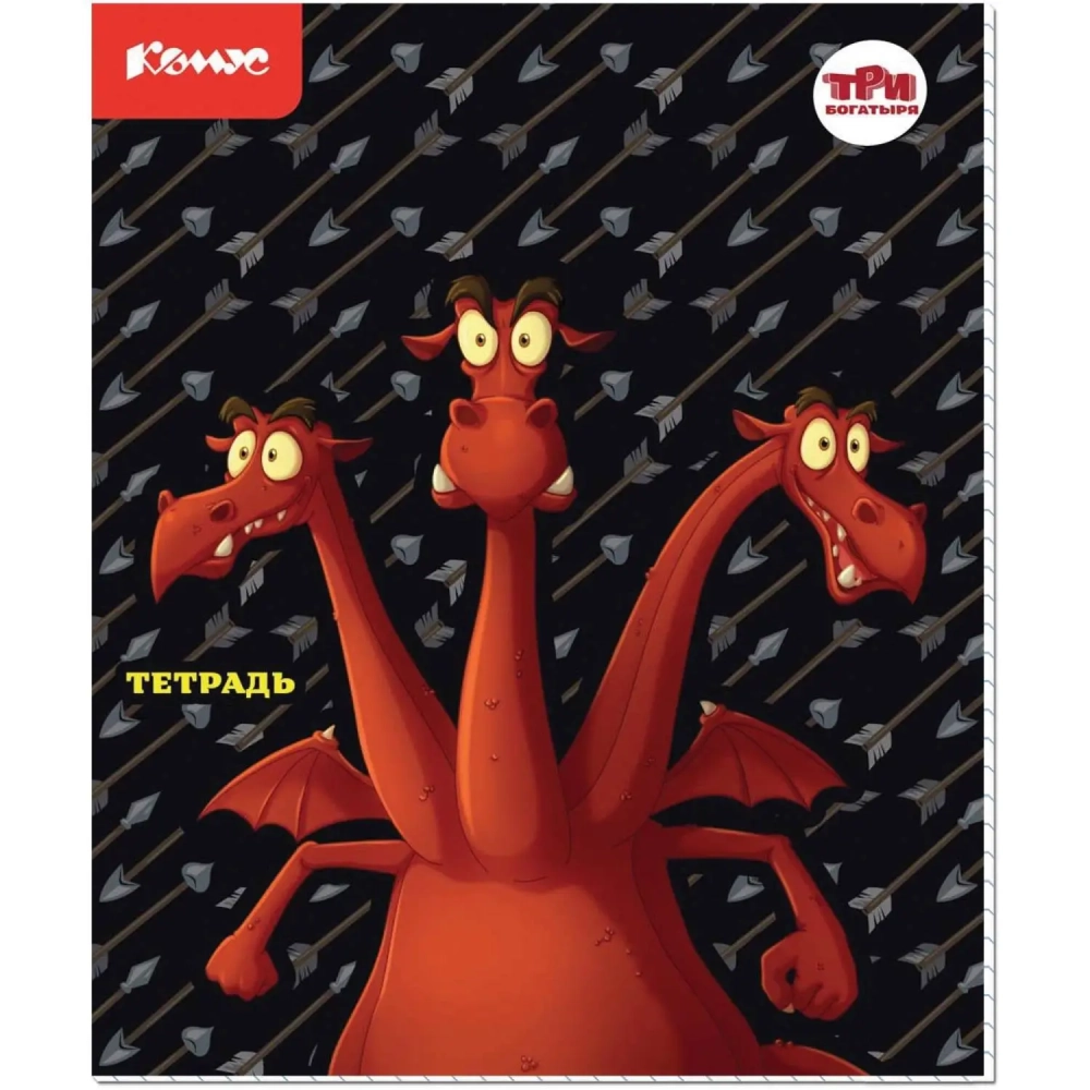 Тетрадь общая Комус Три богатыря 'Дракон', А5, 48л, клетка, скреп., ВБ-лак