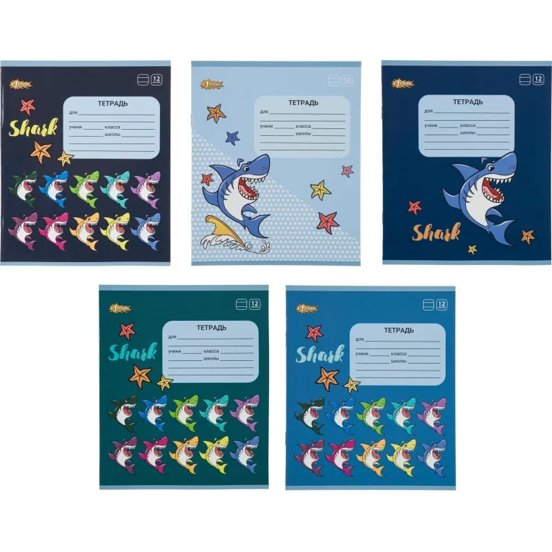 Тетрадь школьная А5 12л №1School Shark линия,скреп, ВД-лак,10шт/уп, в асс