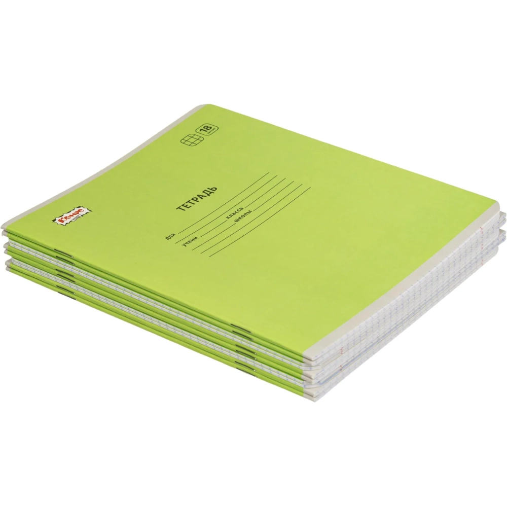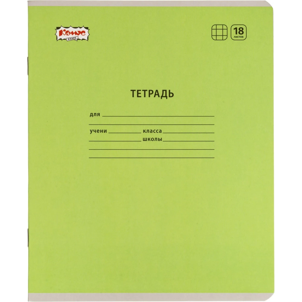 Тетрадь школьная Комус Класс А5 18 л клетка, Зеленый 10 шт./уп