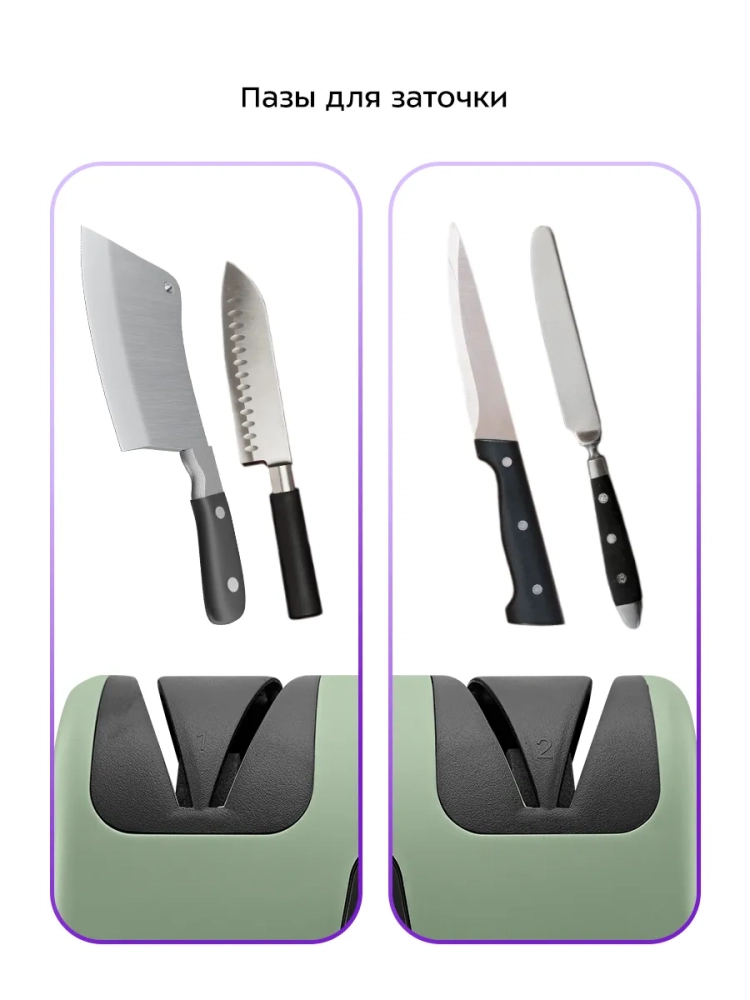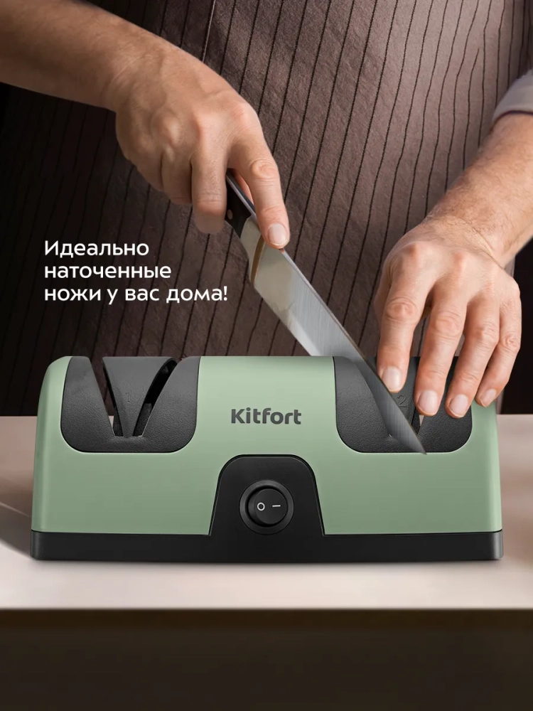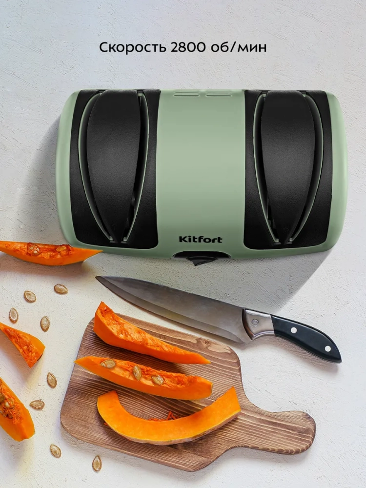 Электроточилка для ножей Kitfort КТ-6390 поможет быстро и безопасно заточить ножи с гладкими стальными лезвиями.