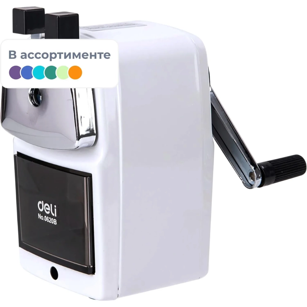Точилка механическая Deli, 1 отв., со струбциной, в картонной уп., ассорти