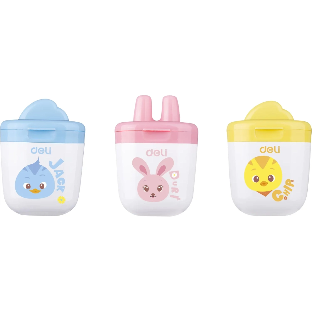 Точилка ручная Deli ER01300, 1 отверстие, с контейнером, пластик, ассорти