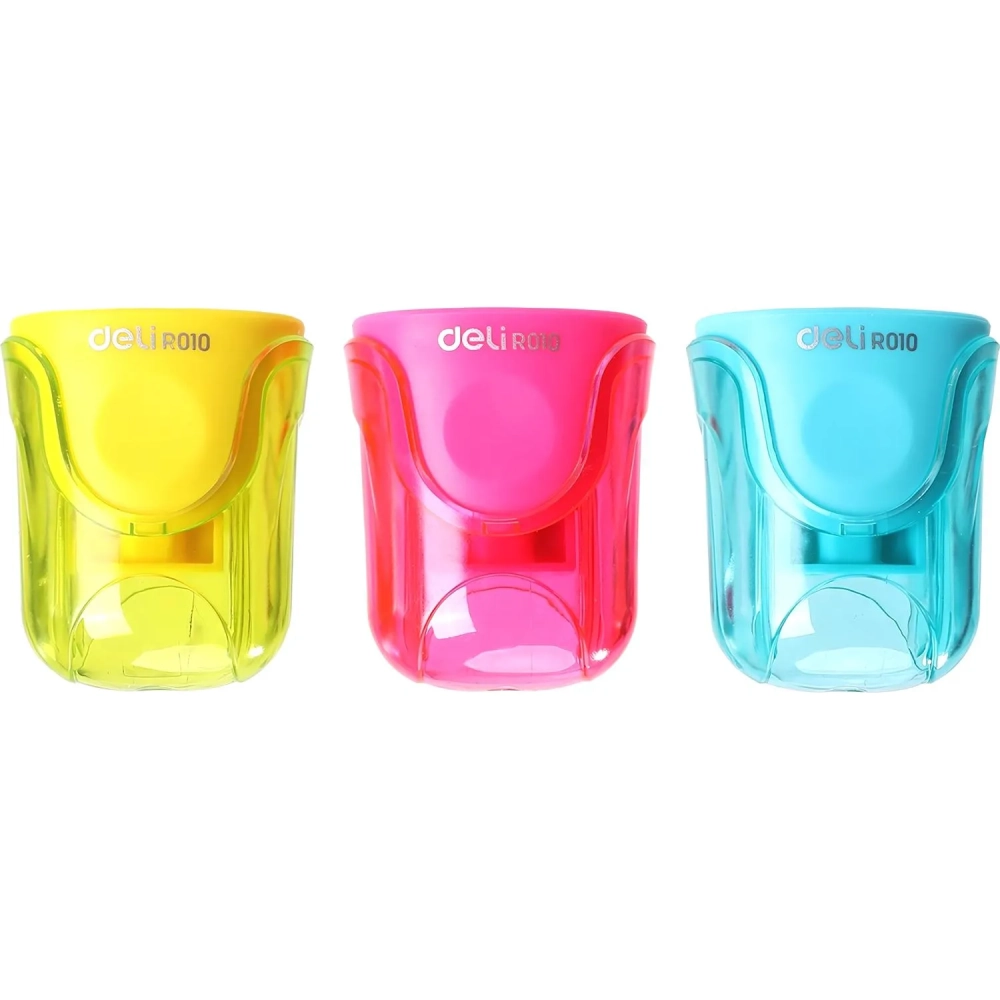 Точилка ручная Deli U-touch, 1 отверстие, с контейнером, пластик, ассорти