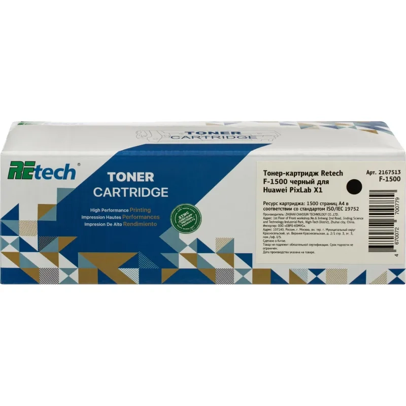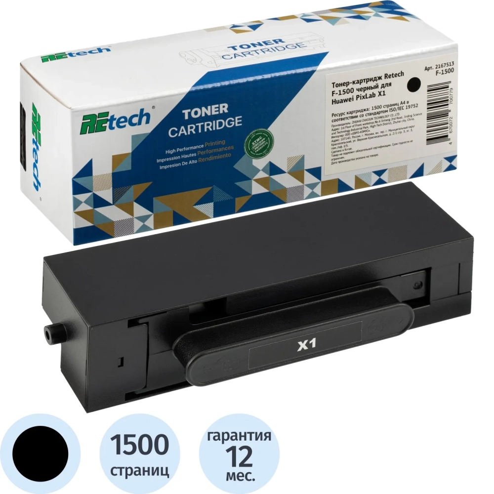 Тонер-картридж Retech F-1500 чер. для для Huawei PixLab X1