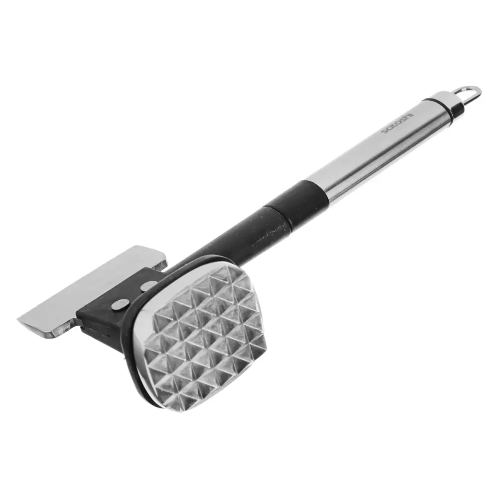 Молоток-топорик для мяса SATOSHI Альфа сделан из нержавеющей стали. Каждая хозяйка знает, что такой топорик - верный помощник на кухне, который очень выручает в приготовлении свинины, баранины или любого другого вида мяса. Удобная ручка не позволит выскользнуть молотку-топорику из руки, изделие очень просто мыть и хранить.. Подходит для ежедневного использования дома и на даче. Надёжная конструкция обеспечивает равномерный нагрев и удобство приготовления. Антипригарное покрытие облегчает уход и позволяет готовить с минимальным количеством масла. Совместимо с индукционными и другими типами плит.