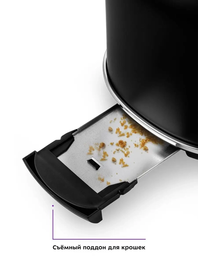 Снизу расположен выдвижной поддон для крошек, поэтому чистить тостер просто и удобно.
