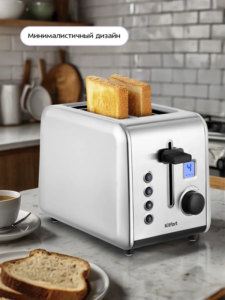 Электрический тостер Kitfort КТ-6412 создан для тех, кто любит полакомиться ароматным и хрустящим поджаренным хлебом. Особый вкус и цвет корочки тостов получается благодаря карамелизации сахара, содержащегося в муке, при инфракрасном нагреве в процессе приготовления.
