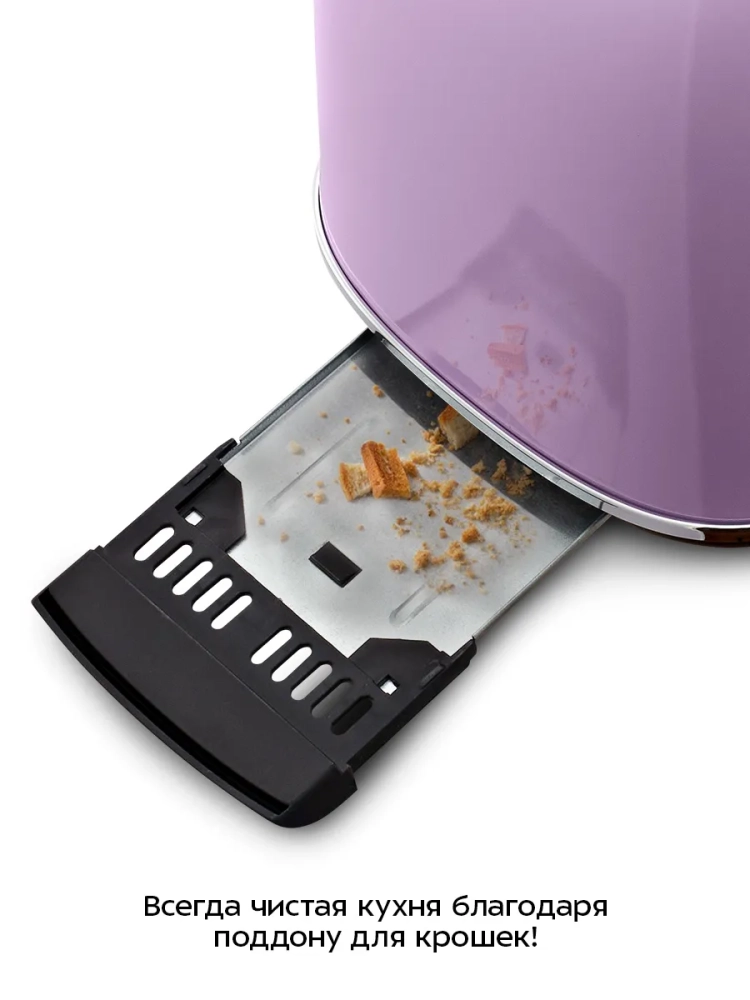 Съемный поддон для крошек позволяет легко и удобно очистить тостер от хлебных крошек.
