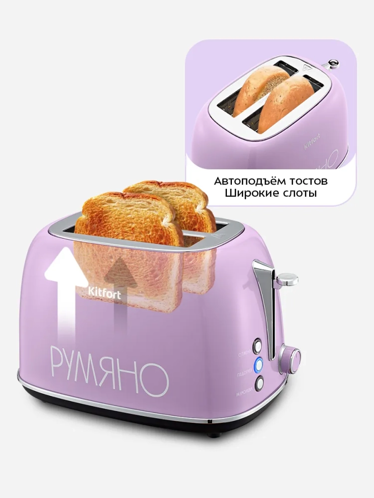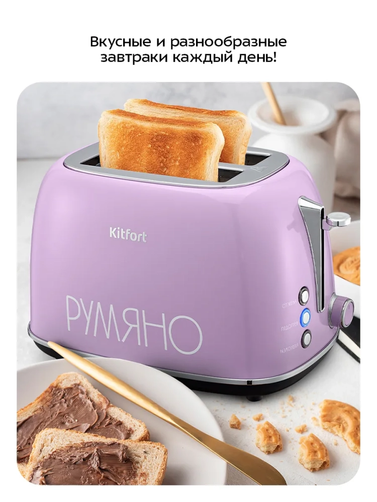 Электрический тостер Kitfort КТ-6833 создан для тех, кто любит полакомиться ароматным и хрустящим поджаренным хлебом. Особый вкус и цвет корочки тостов получаются такими благодаря карамелизации сахара, содержащегося в муке, при инфракрасном нагреве в процессе приготовления.