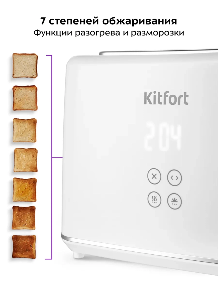 Электрический тостер Kitfort КТ-6872 создан для тех, кто любит полакомиться ароматным и хрустящим поджаренным хлебом. Особый вкус и цвет корочки тостов получаются такими благодаря карамелизации сахара, содержащегося в муке, при инфракрасном нагреве в процессе приготовления.