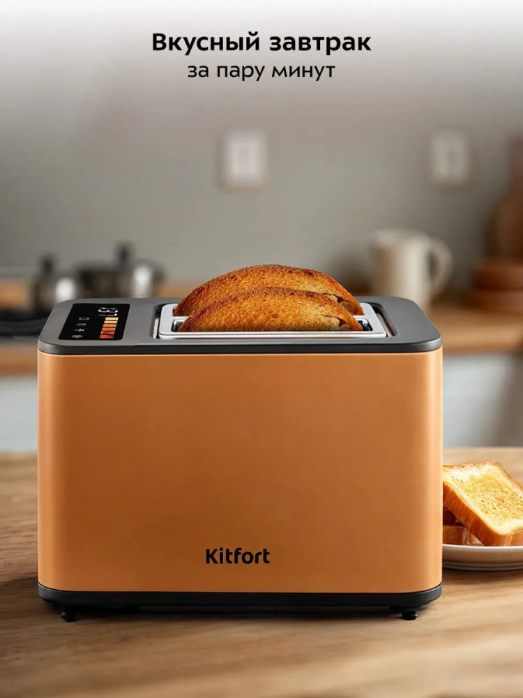 Электрический тостер Kitfort КТ-6877 создан для тех, кто любит полакомиться ароматным и хрустящим поджаренным хлебом. Особый вкус и цвет корочки тостов получаются такими благодаря карамелизации сахара, содержащегося в муке, при инфракрасном нагреве в процессе приготовления.