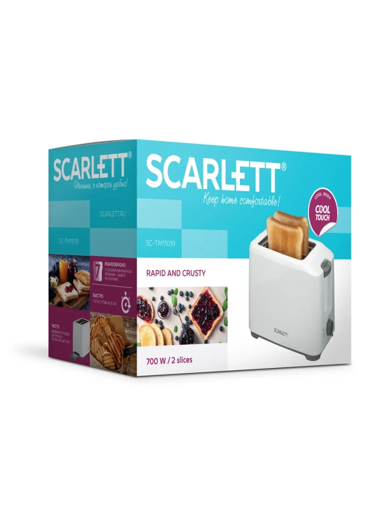 Тостер SC-TM11019 c 7 степенями равномерной прожарки. Уникальное сочетание компактных размеров и технологии Cool Touch позволит сэкономить место на кухне и предостеречь от ожога за счет холодного корпуса. Выдвижной поддон для крошек поможет сохранить Ваш стол чистым. Подсветка кнопки Cancel облегчит пользование прибором. Классическое сочетание цветов тостера SC-TM11019 идеально впишется в интерьер Вашей кухни!