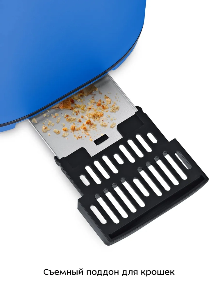 Съемный поддон для крошек позволяет легко и удобно очистить тостер от хлебных крошек.