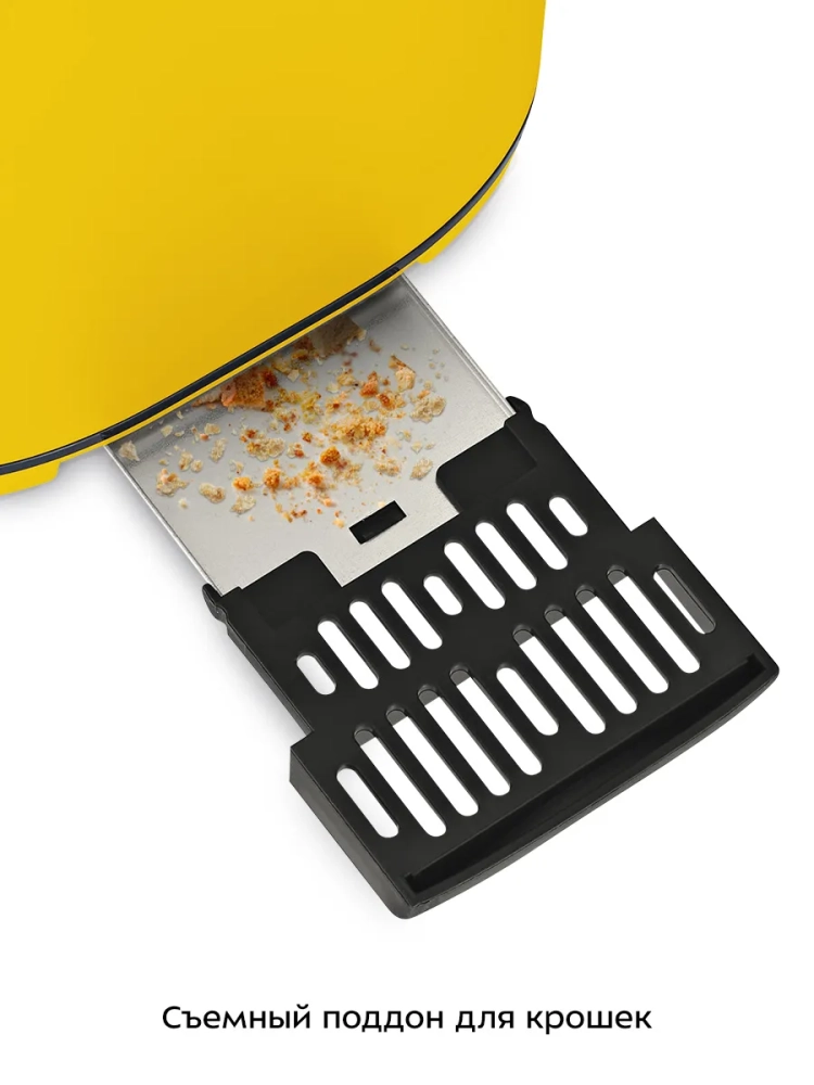 Съемный поддон для крошек позволяет легко и удобно очистить тостер от хлебных крошек.