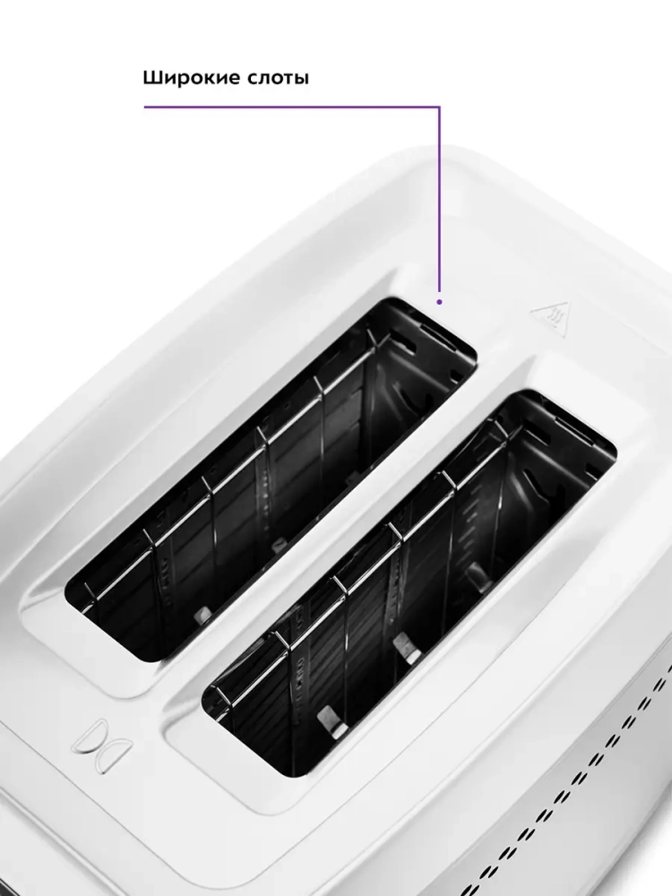 Широкие слоты для тостов позволяют поджаривать не только тонкие ломтики хлеба, но и толстые. Загруженные тосты автоматически центрируются, чтобы их поджарка с двух сторон была равномерной независимо от толщины куска. По окончании приготовления тостер автоматически отключается, а тосты поднимаются вверх. Также в тостере предусмотрена функция экстра-подъема, чтобы тосты было удобнее извлекать. Вы можете приготовить 1 или 2 тоста одновременно.