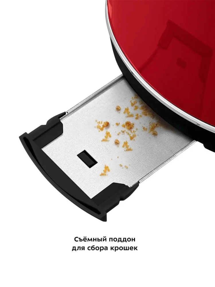 Снизу расположен выдвижной поддон для крошек, поэтому чистить тостер просто и удобно.