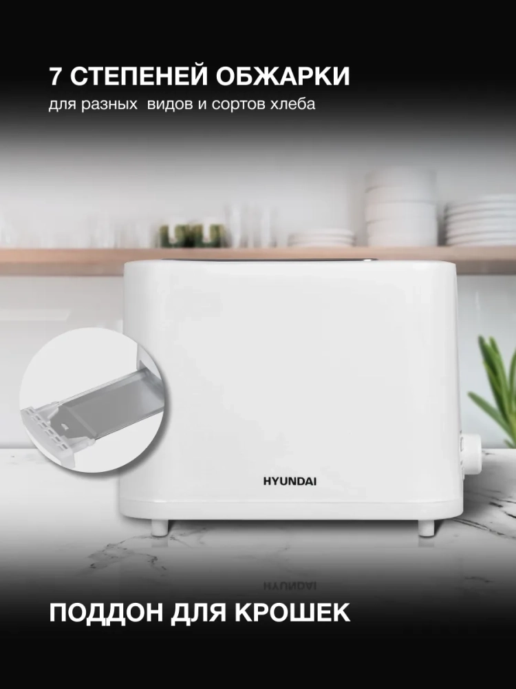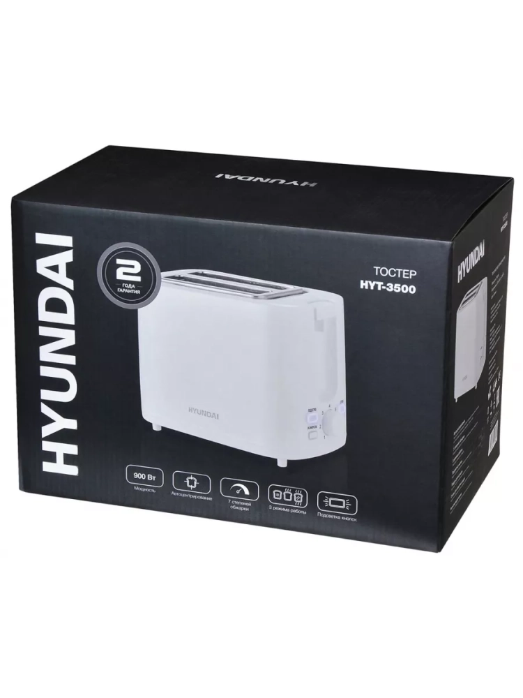 Тостер Hyundai HYT-3500 белый, мощность 900Вт, количество отделений: 2, длина сетевого шнура 0.75м