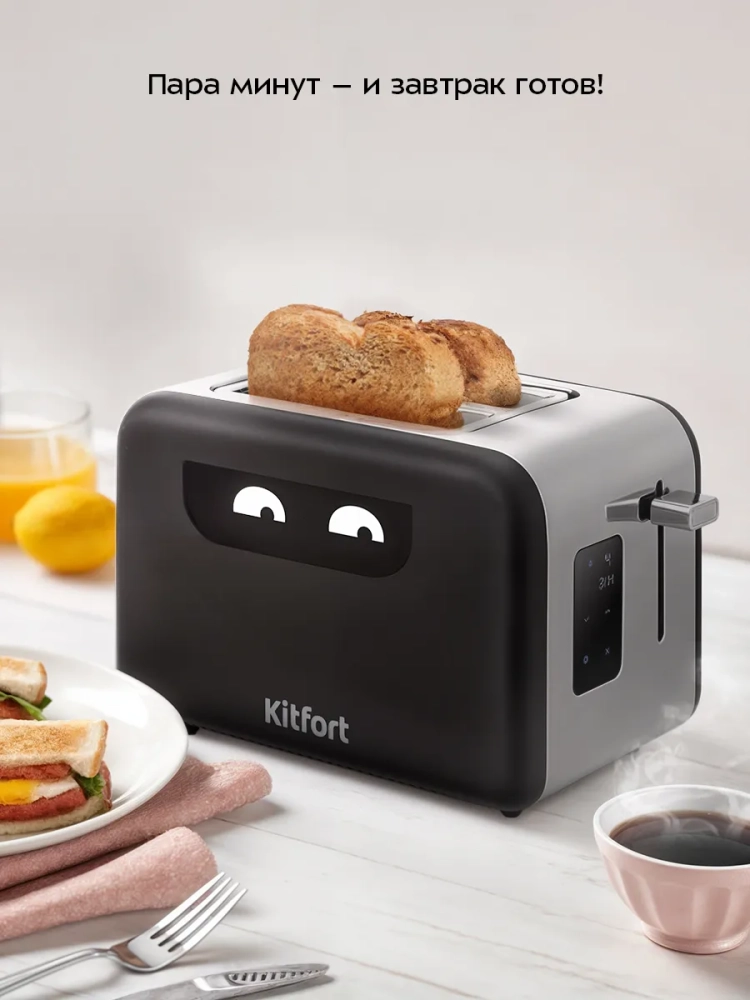 Электрический тостер Kitfort КТ-6497 создан для тех, кто любит полакомиться ароматным и хрустящим поджаренным хлебом. Особый вкус и цвет корочки тостов получаются такими благодаря карамелизации сахара, содержащегося в хлебе, при инфракрасном нагреве в процессе приготовления.