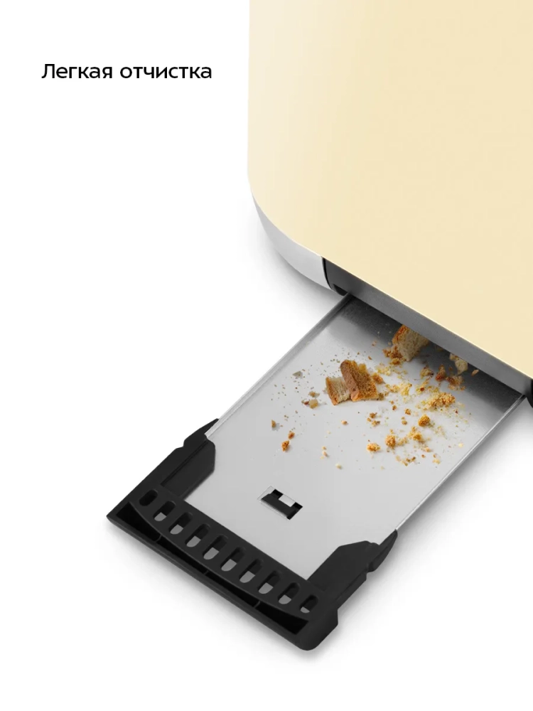 Съемный поддон для крошек позволяет легко и удобно очистить тостер от хлебных крошек.