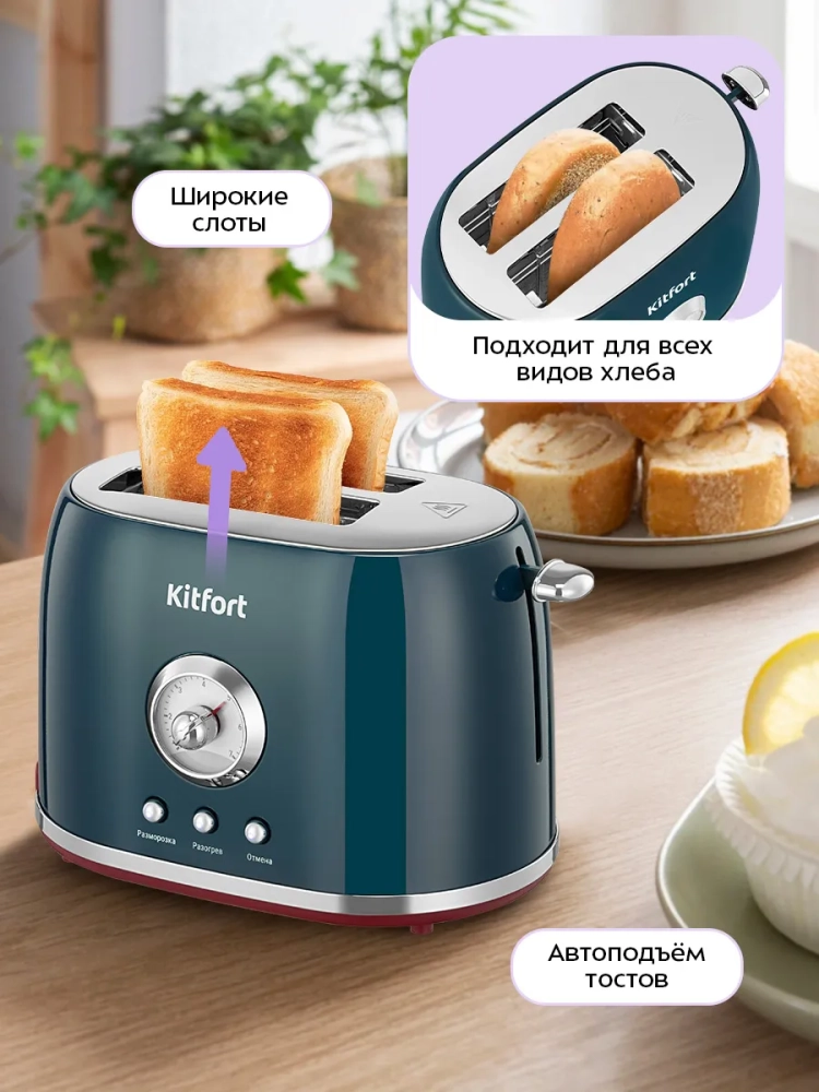 Электрический тостер Kitfort КТ-9801 создан для тех, кто любит ароматный и хрустящий горячий поджаренный хлеб. Особый вкус и цвет корочки тостов получаются такими благодаря карамелизации сахара, содержащегося в хлебе, при инфракрасном нагреве в процессе приготовления.