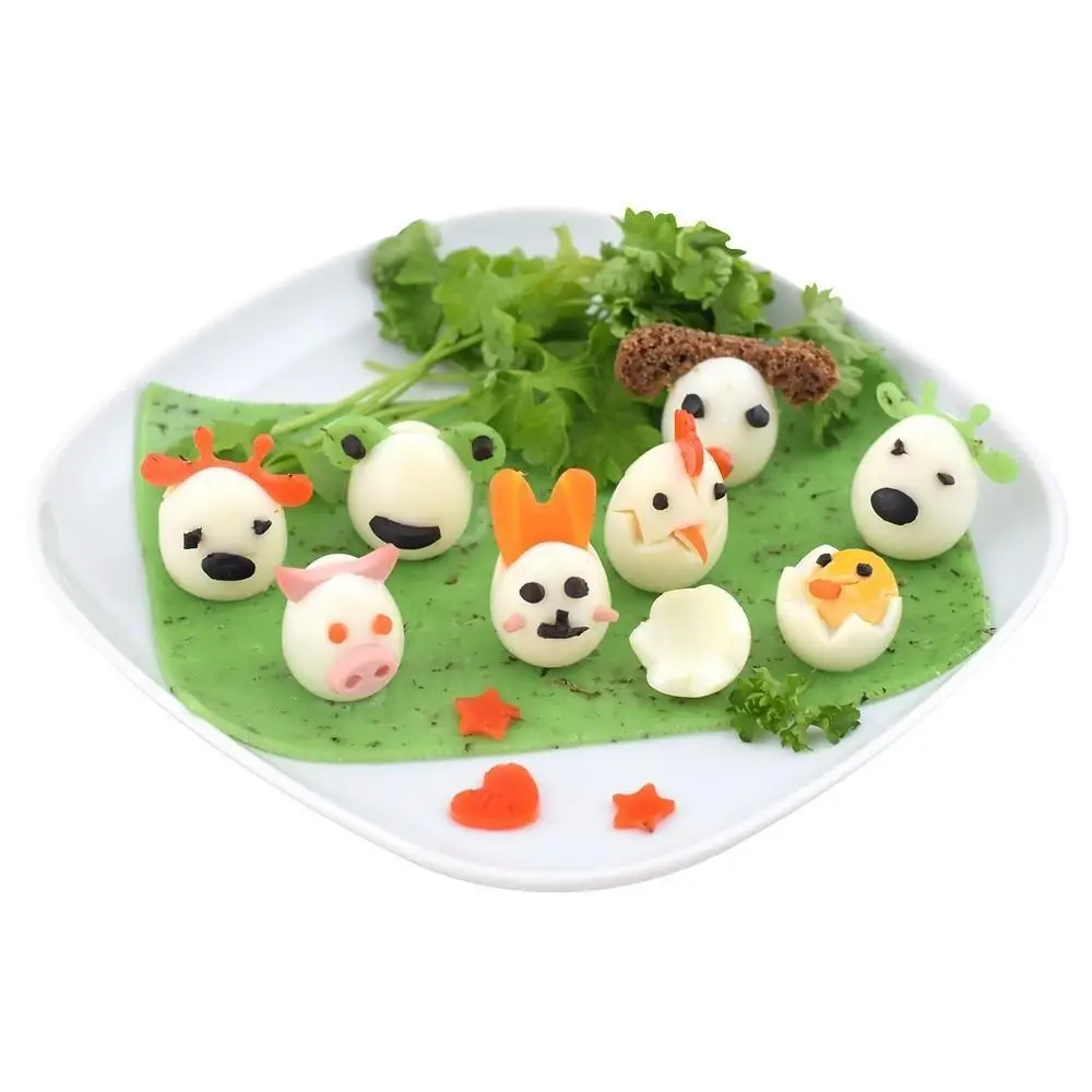 Трафарет предназначен для украшения блюд. С его помощью вы можете вырезать фигурки из сыра, колбасы, овощей и украшать ими детские блюда или бутерброды. Это повысит интерес и аппетит у детей, которых порой очень сложно накормить. С помощью этого трафарета для декорирования вы сможете украсить праздничный стол и удивить своих гостей. Также трафарет подойдет для вырезания идеально ровных фигурок из мастики, марципана, теста для украшения выпечки. Привлекайте к украшению детей – превращайте этот процесс в настоящее творчество! После использования промойте в проточной воде, можно с жидкими моющими средствами. Изготовлено из пластмассы (полистирол).