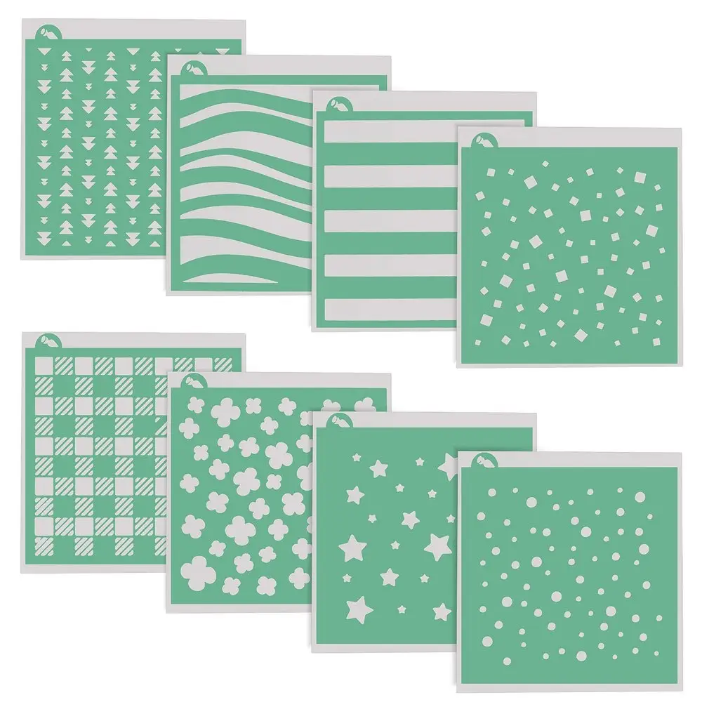 Трафареты станут незаменимыми помощниками в украшении выпечки (пряников, печений и т. п.). Для декорирования подойдут какао, корица, крем, мастика, шоколад, сахарная пудра. Также рисунок можно нанести с помощью айсинга или скалкой прокатать мастику или марципан, чтобы получить узор. Приспособления изготавливаются из тонкого гибкого пластика, поэтому прекрасно держат форму, не сминаются и не размокают и их можно приложить как к прямой, так и к округлой поверхности. Очень просты в применении.