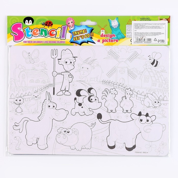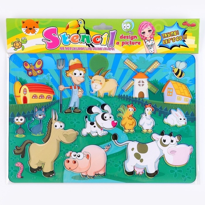 Трафарет для малышей «Весёлая ферма» с раскраской