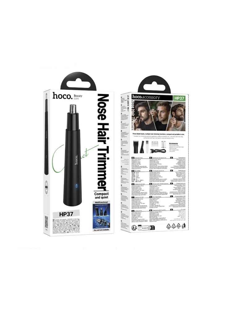 Триммер для носа hoco HP37 выполнен в чёрном цвете и имеет корпус из ABS пластика, что обеспечивает прочность и стильный внешний вид. Благодаря трёхмерному изогнутому лезвию и простому управлению одной кнопкой, стрижка становится максимально комфортной и безопасной. Триммер имеет 3 насадки: для носа, для бровей и для бритья ног (и тому подобному). Благодаря тому что насадки съёмные их легко мыть после использования. Одного полного заряда хватает до 40 минут использования.